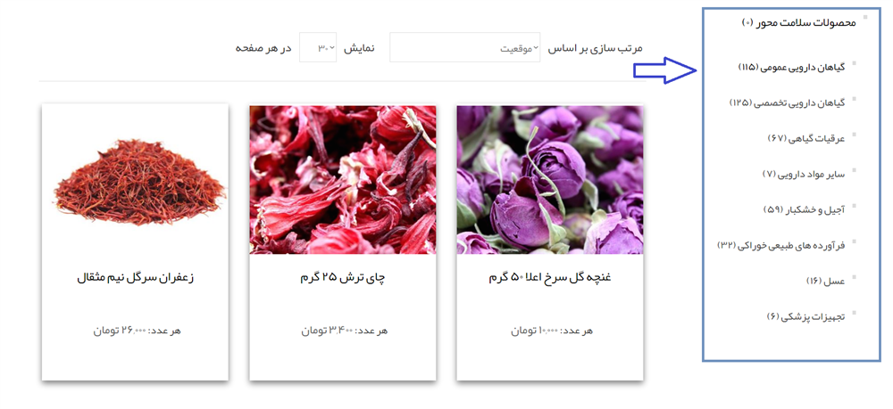 جهت مشاهده ی دیگر محصولات میتوانیم آنها را در سایر دسته بندی ها که در منوی سمت راست قرار گرفته، انتخاب و به سبد خود اضافه کنیم.